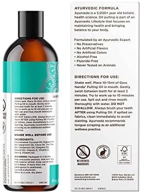 - IDEAL FOR DAILY USE: GuruNanda oil pulling is an alcohol free, fluoride free, preservative free, cruelty free ayurvedic recipe that contains no artificial flavors, making it safe and easy to use daily for long-term oral care. It is recommended to oil pull at the beginning of your day on an empty stomach up to 10 minutes a day for ultimate benefits. This specific formula is a holistic way of taking care of your oral hygiene.